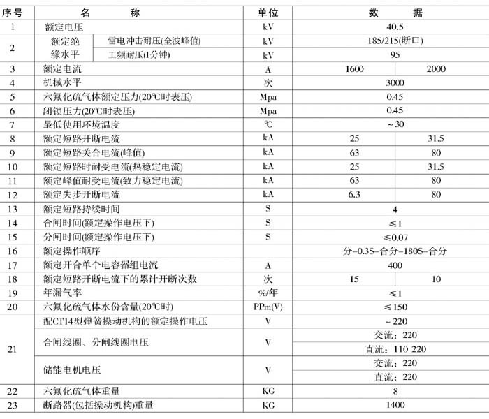 a.開斷性能優(yōu)良,燃弧時(shí)間短,電壽命長(zhǎng),在額定電壓下連續(xù)開斷25千安20次不檢修,不更換六氟化硫氣體;