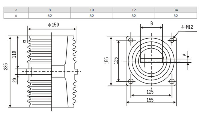 TG1-10Q套管為環(huán)氧樹脂APG工藝壓力凝膠成型結(jié)構(gòu),外形結(jié)構(gòu)尺寸大小為128(100×100)mm、高225mm。主要適用于額定電壓為10KV及以下的成套設(shè)備中,作絕緣隔離和聯(lián)接過度之用。套管耐污及潮濕,無需特別維護(hù),只需定期地清理表面污質(zhì)。安裝時母排從孔內(nèi)穿過。