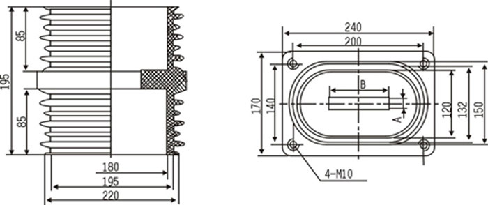 TG3-10Q穿墻套管為環(huán)氧樹脂APG工藝壓力凝膠成型結(jié)構(gòu),外形結(jié)構(gòu)尺寸大小為128(100×100)mm、高225mm。主要適用于額定電壓為10KV及以下的成套設(shè)備中,作絕緣隔離和聯(lián)接過度之用。套管耐污及潮濕,無需特別維護(hù),只需定期地清理表面污質(zhì)。安裝時(shí)母排從孔內(nèi)穿過。